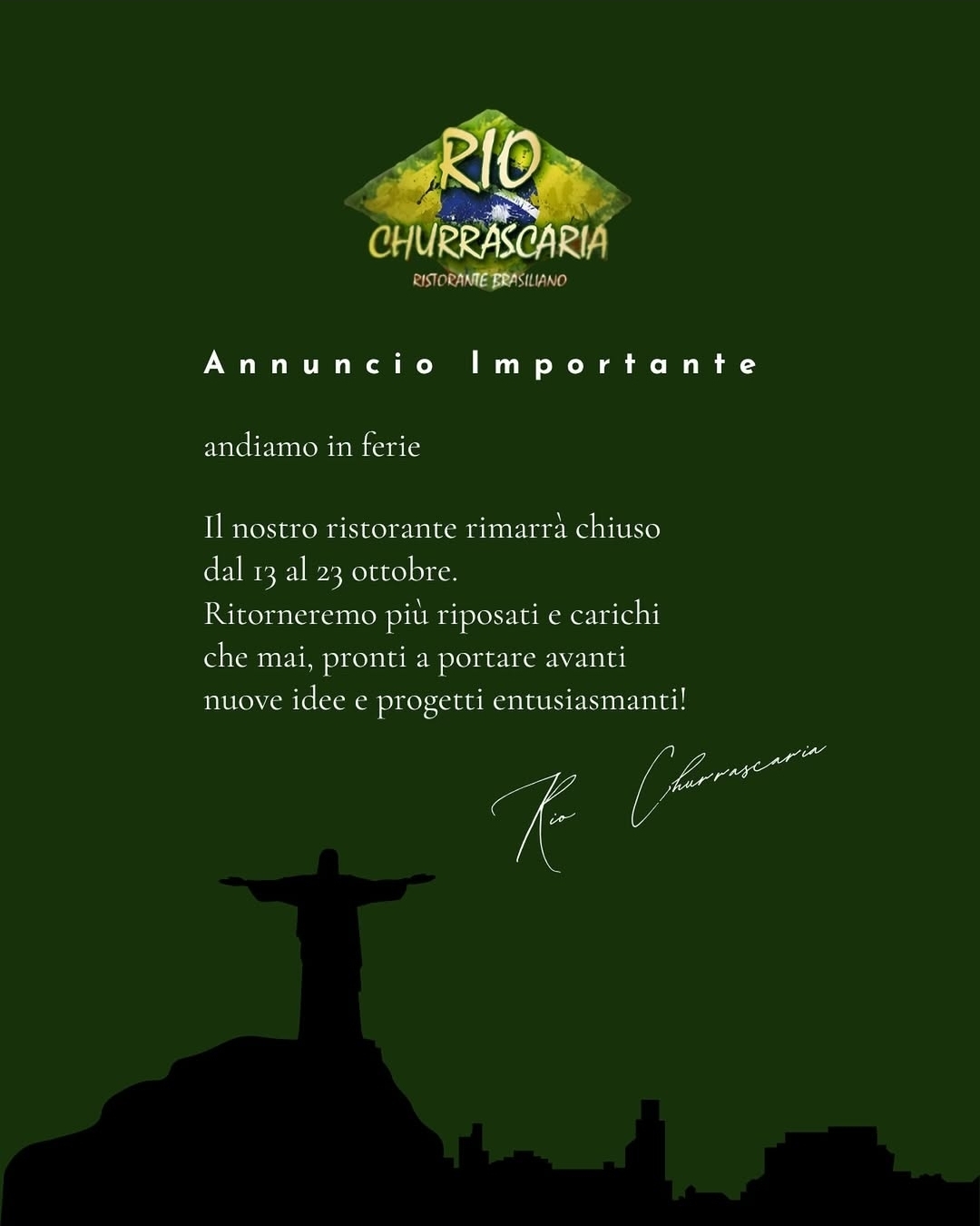 Benvenuti al Rio Churrascaria! Il più autentico e originale Menù Brasiliano a soli 15 minuti da Malpensa; oltre 12 tipi di carne alla griglia di qualità selezionata, accompagnate da un clima caldo e accogliente, drink esclusivi e novità del 2025, la Pizza!